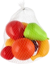 Et farverigt sæt plastfrugter i en praktisk netpose, der vil glæde enhver lille kok. Indeholder forskellige slags frugter til fantasifuld leg, læring af farver og navne og udvikling af finmotorik. En let, sikker og nemt vaskbar legeting til børn fra 3 år.