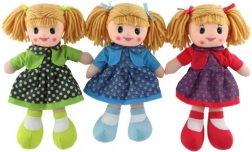 Dukken fås i flere attraktive farver med stilfulde prikkede kjoler. Kjolemønstrene kan afvige fra billederne. Det er ikke muligt at vælge en specifik type tøj, kun farven – så er hver dukke lidt af en original.