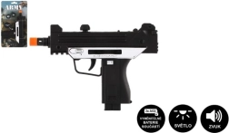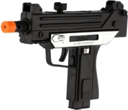 Med en kompakt længde på 17,5 cm ligger denne maskinpistol godt i små børnehænder og er let at betjene.
