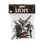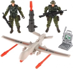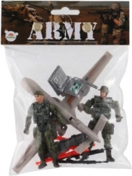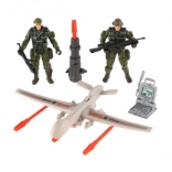 Sættet indeholder to detaljerede soldater i grøn camouflageuniform og et fly, ideelt til realistisk iscenesættelse af slag.
