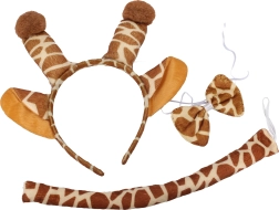 Leder du efter en hurtig og effektiv karnevalsforvandling? Med dette giraf-temasæt får du alt, hvad du behøver, i én pakke. Hårbånd med ører, sløjfe om halsen og hale skaber et legende look, der fanger opmærksomheden med det samme. Tilbehøret er fantastisk til både børn og voksne og passer til kjoler, T-shirts og overalls.