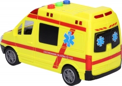 Udforsk redningsaktionernes verden med denne legetøjsambulance! Med en længde på 14,5 cm er den ideel til små hænder og til leg både inde og ude.