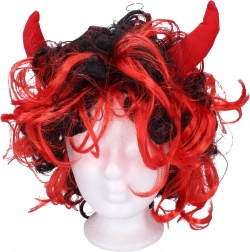 Paryk med røde horn til djævle og djævlepiger
