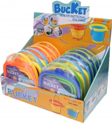 Den firkantede sammenklappelige spand med målene 19 × 19 cm er en fantastisk hjælper til leg i sandet og ved vandet. Takket være den lette og holdbare konstruktion kan børn nemt bære den, og når legen er slut, klappes den enkelt sammen til en kompakt størrelse, der ikke fylder i rygsækken eller kufferten.
