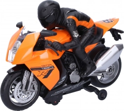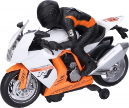 Nyd en actionfyldt tur med en stilfuld racer-motorcykel på 28 cm med førerfigur. Den byder på lys- og lydeffekter, realistisk design og to farvevarianter – orange og hvid. Perfekt til små racerkørere og motorcykelentusiaster.