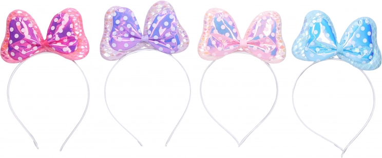 Stilfuldt karnevalssæt til både børn og voksne med en hårbøjle og en iøjnefaldende sløjfe i fire farvevarianter. Ideelt til kostumer, fester og temabegivenheder. Nemt at tage på, let og behageligt til en hel aften. En fantastisk måde at give dit outfit et legende udtryk og skille dig ud med det samme.