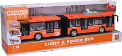 Den store bus imponerer med realistiske detaljer og nem betjening. Friktionsmotoren sikrer en jævn kørsel uden behov for batterier til fremdrift, mens lys- og lydeffekterne aktiveres med fire knapper på taget. Børn får masser af sjov ved at lege chauffør og passager.
