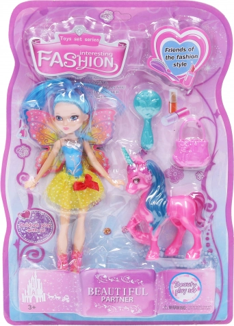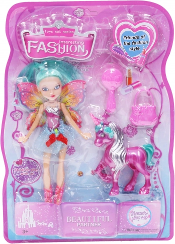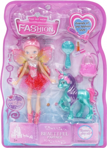 Den fortryllende fe-dukke med enhjørning vil glæde ethvert barn, der elsker eventyr og en magisk fantasiverden. Sættet indeholder en dukke på 21 cm, en sød enhjørning og tilbehør – børste og håndtaske. Enhjørningen fås i 3 farvevarianter: lilla, grøn og lyserød.