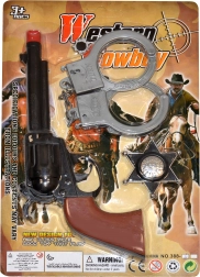 Tag på WESTERN-eventyr. Dette komplette sherifsæt til små helte tilbyder alt, hvad der skal til for at beskytte byen mod skurke: en realistisk pistol, sikre håndjern og et markant sherifbadge. Perfekt til hjemmeleg, fastelavn og udklædningslege.