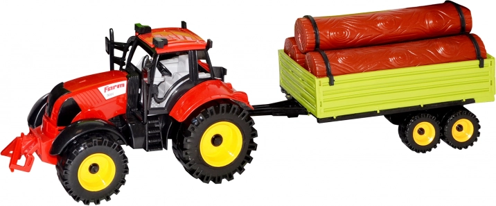 Traktor med trailer og træstammer er det ideelle legetøj til små landmænd og skovarbejdere. Med sit realistiske udseende, stærke farver og holdbare plastkonstruktion engagerer den børnene i fantasifuld leg og skaber deres egen verden af landbrugseventyr. Sættet inkluderer en trailer lastet med “træstammer”, der kan transporteres, lastes og losses.