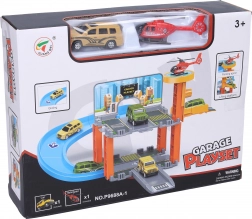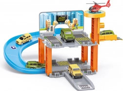 Denne detaljerede parkeringsstation giver børn en realistisk oplevelse af en by-parkeringsplads. Med den manuelle elevator kan bilerne nemt køre mellem etagerne, og helipaden muliggør landing for helikopteren. Takket være den solide konstruktion og gennemtænkte funktioner træner børn både finmotorik og fantasi.