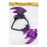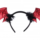 Stilfuld karnevalshårbøjle med flagermusvinger er det perfekte tilbehør til Halloween, maskerade og temafester. Let, behagelig og iøjnefaldende – fås i tre farvevarianter for nem tilpasning til dit kostume. Blød polstring og fjerdetaljer sikrer komfortabel brug og et attraktivt look.