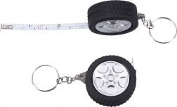 Praktisk nøglering formet som et hjul med integreret målebånd på 1 meter – det perfekte tilbehør for alle, der har brug for altid at have et målebånd ved hånden.