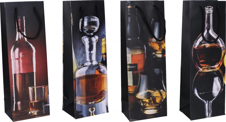 Elegant gavepose til flaske i mellemstørrelse, ideel til helårlig brug. Tilbyder et elegant look med mulighed for at vælge mellem 4 forskellige designs.