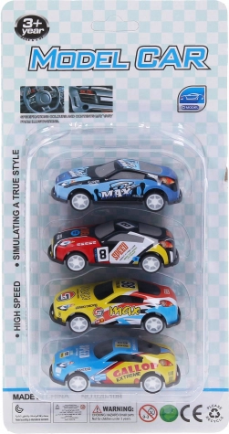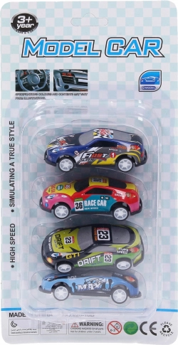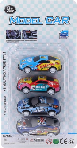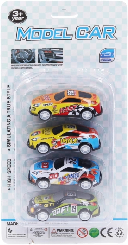 Sæt med 4 biler, størrelse 6,5 cm, friløbshjul, flere varianter.
