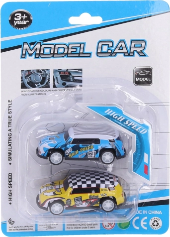 Sæt med to små biler med fritløbende hjul er ideelt til små bilentusiaster. Med en længde på blot 6,5 cm er de perfekte til små hænder og kreativ leg.