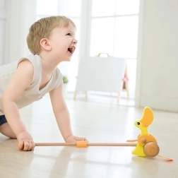 Denne smukke træand fra Classic World er det perfekte legetøj til børn fra 12 måneder. Når den bevæger sig, klapper fødderne mod gulvet, hvilket får barnet til at bryde ud i glædelig latter. Takket være de stille hjul forstyrrer legetøjet ikke de øvrige familiemedlemmer.