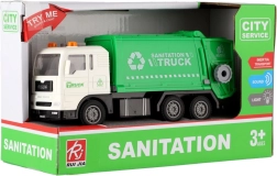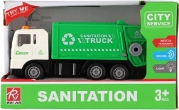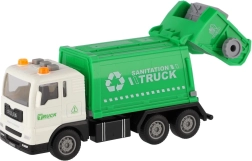 Denne plastiske skraldebil er en fantastisk legetøj for børn fra 3 år. Med friktionsmotor kører den let i gang, de blinkende lys på taget lyser, og lydeffekterne forstærker den realistiske oplevelse. Den åbnelige og tiplige container understøtter kreativ leg og finmotorik.