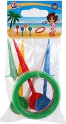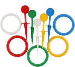 Enkle regler: stik pinde i jorden og kast farverige ringe på dem. Den, der rammer, scorer point! Takket være de klare farver og variationen i pinde og ringe er spillet let genkendeligt og en iøjnefaldende aktivitet.