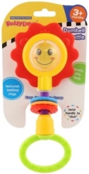 Ved bevægelse giver det drejelige håndtag en behagelig kliklyd, og de farvede ringe indbyder til at gribe og flytte dem, hvilket understøtter øje–hånd-koordination og finmotorik. Bideelementerne giver desuden lindring til følsomme gummer under tandfrembrud.