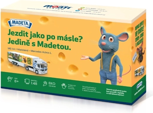 Byggesæt Monti System Madeland Mercedes Actros L er et fantastisk byggesæt, som du kan samle uden brug af lim og farver i skala 1:48. Takket være de smarte mekanismer klikkes delene nemt sammen.