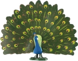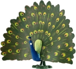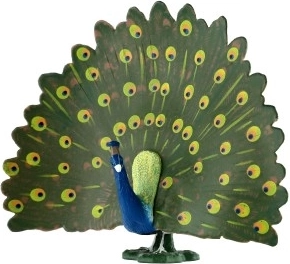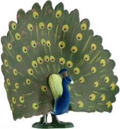 Figuren er ideel til børneværelser, klasselokaler og som pynt på hylder og skriveborde. Den kan bruges til undervisning om dyr, påfuglens oprindelse i Indien og Sri Lanka samt som inspiration til kreative lege.