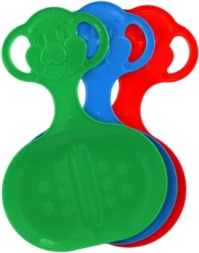 Kælken fås i tre livlige farver: grøn, blå og rød. Dens mål er 33 x 48 cm, hvilket gør den til et perfekt valg for børn fra 3 år, der vil ud og suse ned ad hver en bakke, de møder.