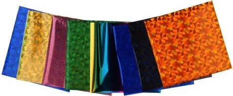 Sættet inkluderer farverige folier med geometriske mønstre, som tilføjer en ny dimension til projekterne.