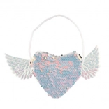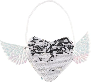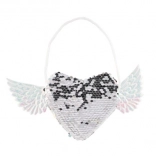 Tilføj et unikt touch til dit outfit med denne magiske taske, der har en hjerteform og vinger på siderne. Ændr pailletternes farve efter dit humør - vælg mellem elegant sølv eller en legesyg lyserød-blå kombination. Tasken er ideel til opbevaring af småting, du altid vil have ved hånden.