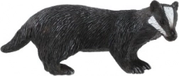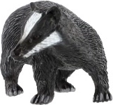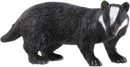 Denne figur forestiller den europæiske grævling (Meles meles) med karakteristiske hvide striber på hovedet og mørk krop. Med de realistiske detaljer hjælper den børn med let at genkende arten og udvide deres viden om skovens dyr, både i undervisning og leg.