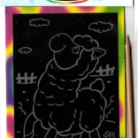 Regnbue skrabeillustration Lama er et ideelt værktøj til at udvikle dine børns kreativitet. Papiret er belagt med et hvidt lag, under hvilket der gemmer sig en farverig regnbueeffekt, som forvandler hvert værk til en iøjnefaldende oplevelse.