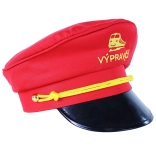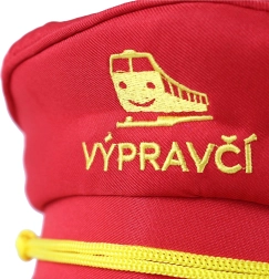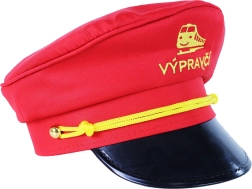 - Rød kasket med broderi, fløjte, afgangsskilt