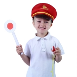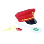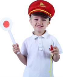 Dette sjove sæt til stationsforstanderen er perfekt til alle små og større tog-entusiaster. Børn går nemt ind i rollen, tager den stilfulde røde kasket med broderi på, pifter i fløjten og løfter afgangsskiltet – og toget kan rulle! Fantastisk til at udvikle fantasi, sociale færdigheder og temaleg.