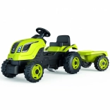 Børnenes trampetraktor med aftagelig trailer giver en realistisk køreoplevelse, rat med horn, justerbart sæde efter barnets højde og åbnbar motorhjelm. Den holdbare konstruktion i kvalitetsplast er ideel til leg både ude og inde.