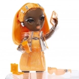Dukke Rainbow High Michelle i orange outfit bringer sjov og udvikler børns kreativitet, ikke kun takket være sine modeaccessories, men også med mulighed for samling.