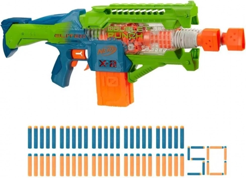 Kickstart den actionfyldte leg med NERF ELITE 2.0 DOUBLE PUNCH! Denne motoriserede blaster har 2 løb og 2 magasiner til uafbrudt ild. I pakken får du 50 pile, så du altid har ammunition ved hånden. Nyd hurtig skydning med bevægelige løb og lang spilletid både ude og inde.