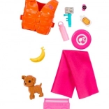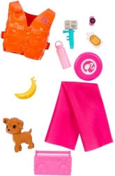 Legesættet indeholder også en redningsvest, håndklæde, stereo, frisbee, solbriller, vandflaske, solcreme, banan og mere. Barbie-dukken har et bevægeligt korpus, som muliggør realistiske bevægelser for levende leg!