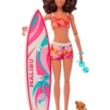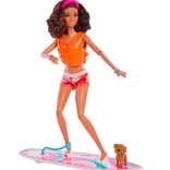 Barbie-dukken er designet til spændende legescenarier på stranden, inklusive sjov på surfbrættet og eventyr med den lille hvalp om bord.