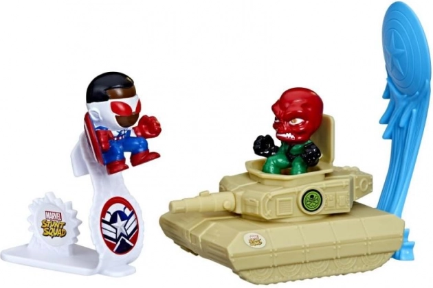 Dyk ned i actionuniverset med legesættet Marvel Avengers Stunt Squad. Dette sæt giver stor underholdning til alle, der elsker de ægte superhelte fra Marvel-universet. To realistiske figurer på 2,5 cm sammen med en affyringsmekanisme og en målbase giver masser af actionfyldt leg. Slip kreativiteten løs og støt udviklingen af børns fantasi gennem spændende dueller mellem helt og skurk.