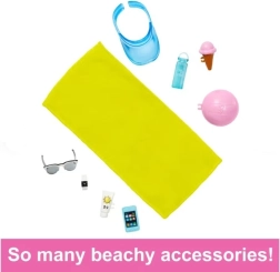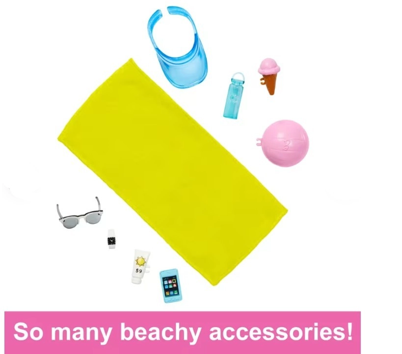 Ken er den perfekte makker til strandeventyr – fra afslapning på håndklædet til leg med en strandbold. Tilbehør som skyggekasket, solbriller og solcreme understøtter fantasifuld leg og udvikling af sociale færdigheder.