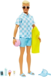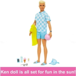 Skab sommerhistorier fulde af sol og sjov med Ken klar til stranden. Et stilfuldt blåt outfit, en let skjorte og tematiske accessories giver uendelige muligheder for leg og fortælling. Takket være detaljer som logoet på sandalerne eller den fastgjorte isvaffel virker scenarierne realistiske og underholdende.