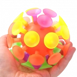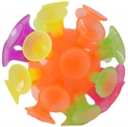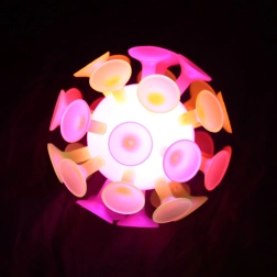 Sjov bold for børn og voksne med sugekopper, som hæfter på glatte overflader. Ved nedslag tænder den automatisk, hvilket giver attraktive lyseffekter og endnu mere sjov leg både inde og ude.