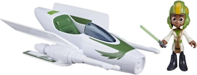 Medfølger gør en 10 cm leddelt figur med egen hjelm og lyssværd til autentiske fortællinger om unge Jedi-riddere. Figuren sidder sikkert i cockpittet, hvilket stimulerer fantasien og udvikler finmotorikken under legen.