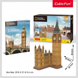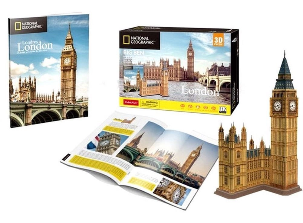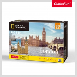 Byg en af Londons mest berømte vartegn. 3D‑puslespillet NATIONAL GEOGRAPHIC: Big Ben fra CUBICFUN tilbyder en detaljeret model, der glæder både arkitekturentusiaster og ivrige byggere. Dele af kvalitets 3 mm skum med lamineret tryk passer præcist og holder formen – den færdige model bliver et stilfuldt supplement til dit hjem.