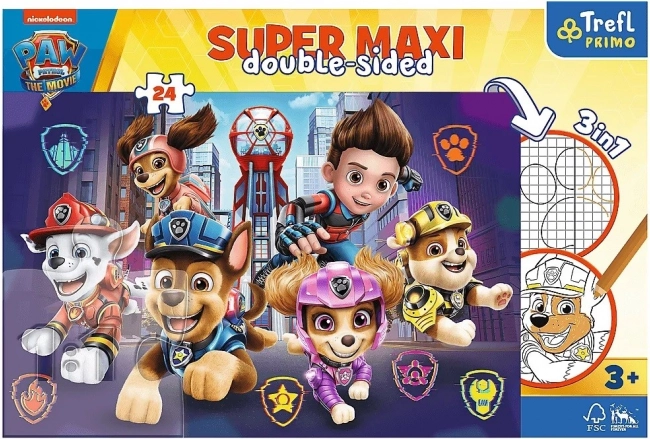 Stort dobbeltsidet puslespil med motivet PAW PATROL: THE MOVIE giver 3 sjove aktiviteter i én: lægning af 24 store brikker, malebog og legende tegneaktivitet på bagsiden. Ideelt til børn fra 3 år – udvikler finmotorik, logisk tænkning og kreativitet.