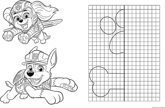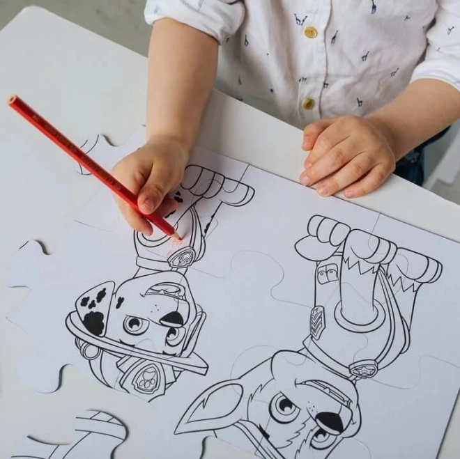 Læg det farverige PAW PATROL-billede og vend puslespillet – på bagsiden venter en malebog og en smart tegneleg til mange timers kreativitet.