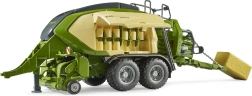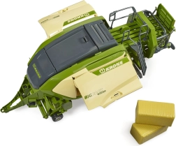Oplev en præcist udført model af en ballepresser inspireret af den virkelige KRONE-maskine. Denne BRUDER-presser i skala 1:16 simulerer arbejdsprocessen troværdigt – fra opsamling af materiale, via skære-rotorer drevet af sidehjul, til mekanisk transport af baller ud på den klapbare udkasterrampe. Ideel til gårdleg, læring og udvidelse af samlingen af landbrugsmaskiner.