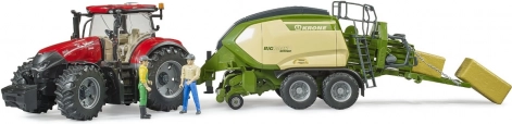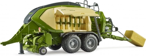 Takket være de åbnebare sidepaneler kan du beundre den realistisk gengivne mekanik og nemt “komme til” serviceindgreb. Den øverste klap gør det muligt at lægge baller i, mens den aftagelige støttefod og det robuste chassis sikrer stabilitet under “drift” og parkering. Modellen er bredt kompatibel med BRUDER-traktorer i serierne 20xx, 21xx, 30xx, 31xx og 40xx, så den passer gnidningsfrit ind i ethvert landbrugssæt.
