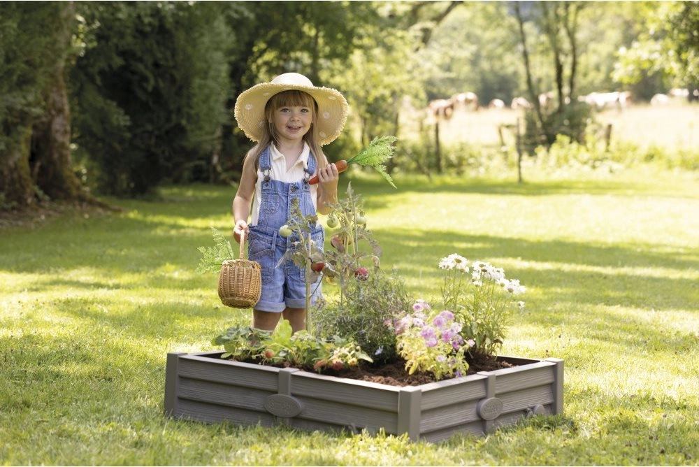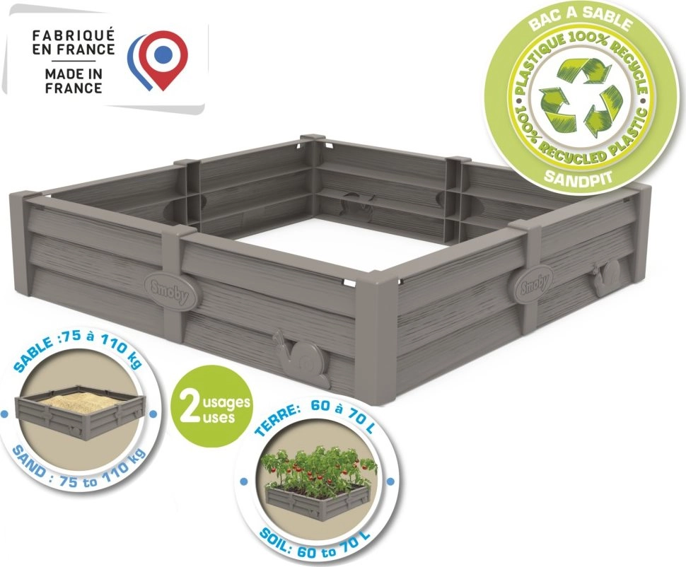 Sandkassen rummer 100 kg sand eller 70 kg jord til dyrkning.