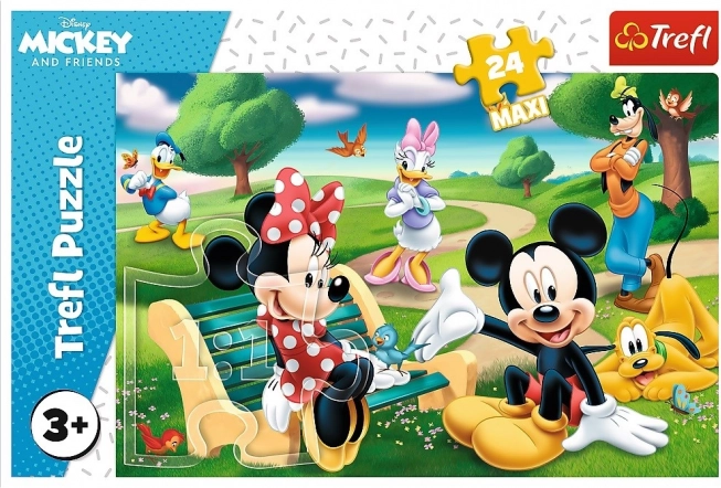 Børnepuslespil med motivet MICKEY MOUSE og venner indeholder 24 MAXI brikker, ideelt til små byggere. Når det er samlet, danner det et billede på 60 × 40 cm. Fremstillet af kvalitets- og miljøvenlige materialer med kalandreret, mere glansfuldt papir for nemmere samling. Fremstillet i Polen.